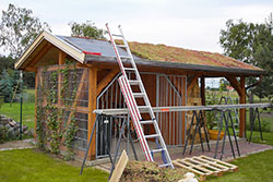 Het plaatsen van de FlorDepot extensieve begroeiing verloopt bij daken met een neiging van 20º op dezelfde manier als bij platte daken. Beveiliging tegen verschuiven is niet nodig.